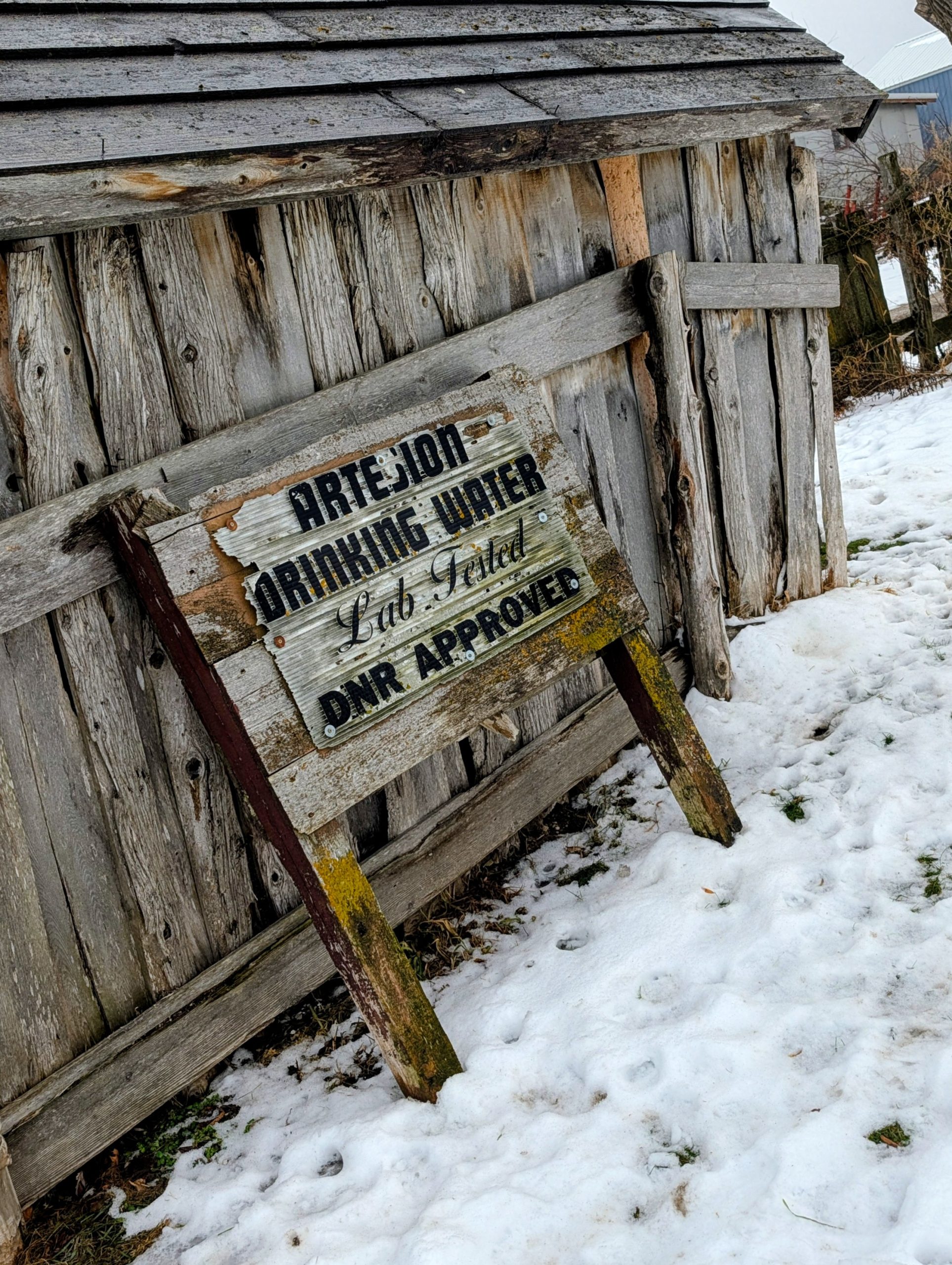 Although it looks a bit questionable, it is legitimate. The well is tested annually by the DNR and is in good standing. Artesian water is known for its purity, mineral content, and taste. All the well owner asks is a $0.25 donation for every gallon of water you take home. It’s an honesty system, with a box on the inside of the shack, so bring your change and bills, as there is no credit card option for payment. The amount paid goes towards the maintenance of the water supply system.
