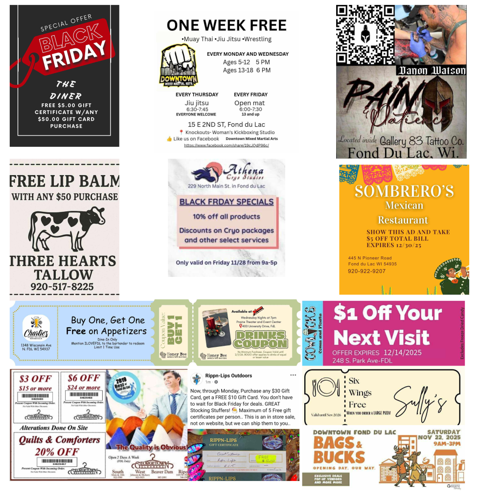 This week is packed with great specials from some of Fond du Lac’s best small businesses. If you’ve been looking for a reason to shop local, this is it. Every deal you see below is a chance to support the people who make our city feel like home. Take a look, check out the offers, and show some love to the shops that keep Fondy going. ❤️